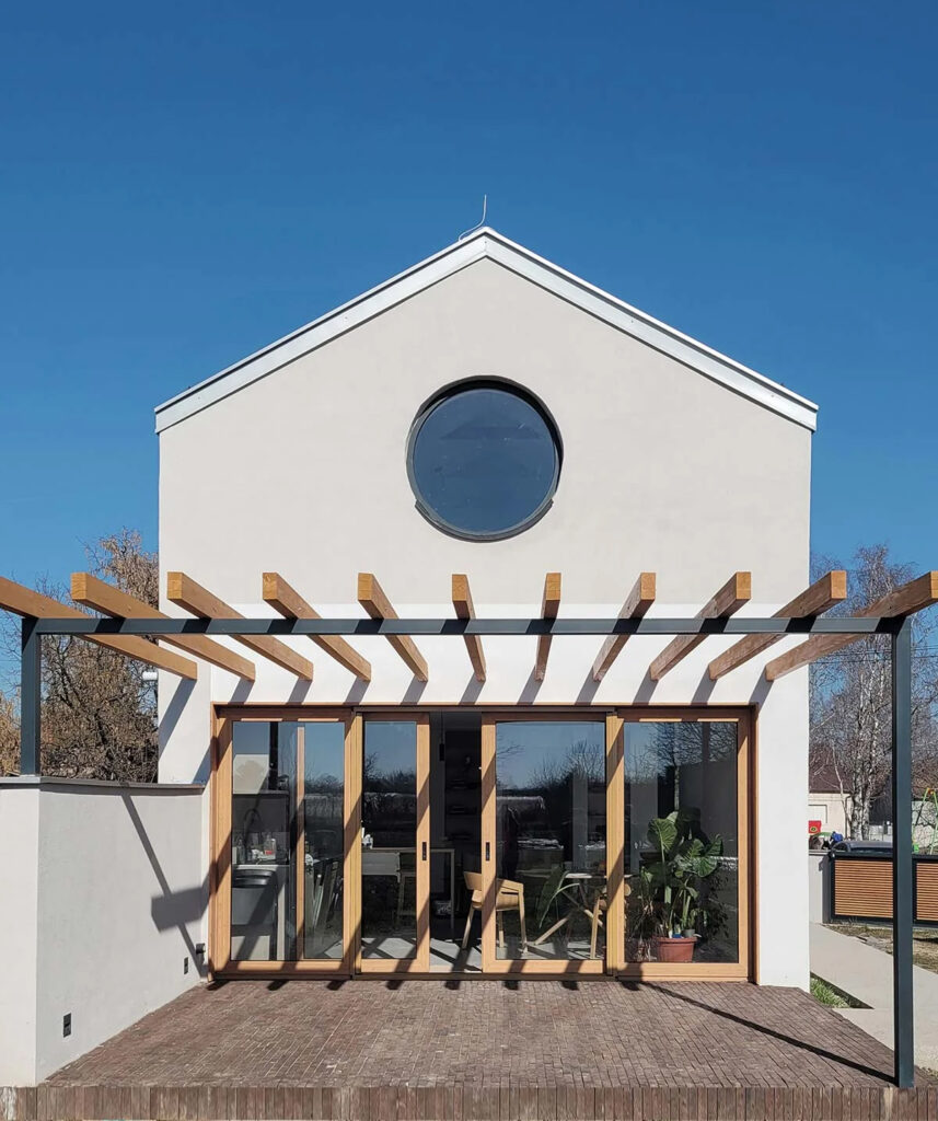 Na ove ambijente se nadovezuje terasa sa drvenom pergolom i dvorište sa organskom baštom, podjednako korišćene većim delom godine.