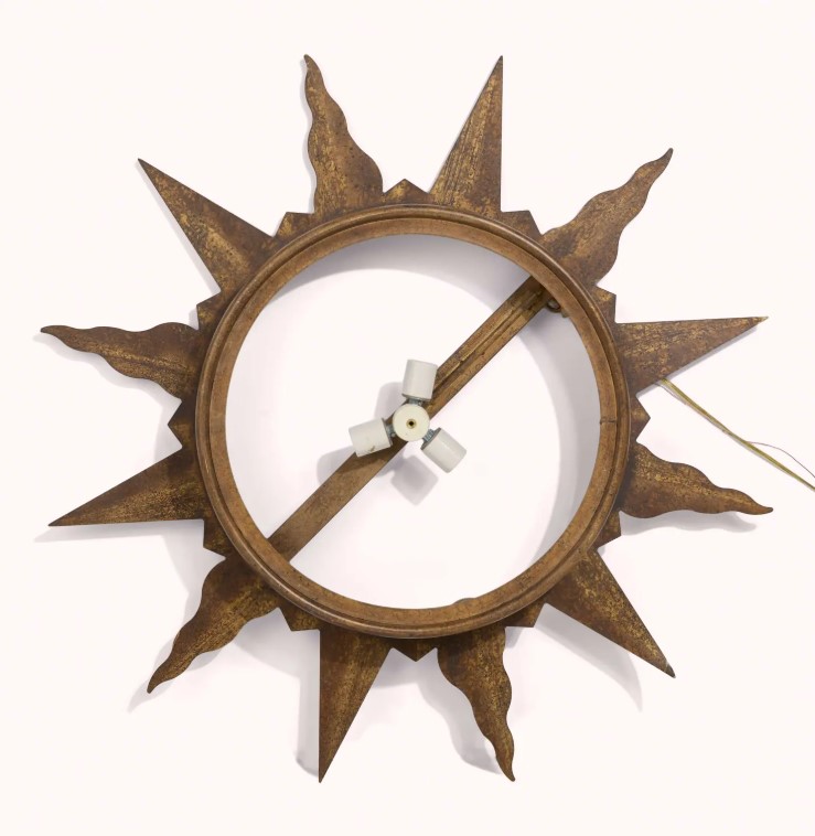Mesingana zidna lampa sa tri svetlosne tačke u obliku sunca nalazila se u galerijskom prostoru Šarlot. Procena – 300-500 dolara.