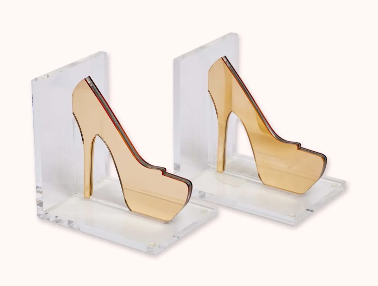 Kerina ljubav prema cipelama očigledna je i ovde – zlatno-prozirni akrilni držači za knjige u obliku salonki. Procena – 100-200 dolara.