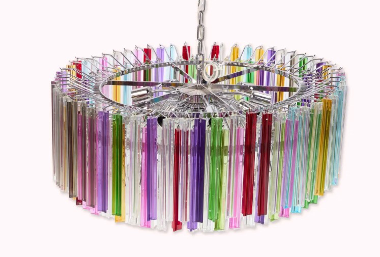 Liza je za svoju spavaću sobu izabrala raskošan, višebojni kružni luster od murano stakla sa trouglastim prizmama – komad koji, poput nje, ne prolazi nezapaženo. Procena – 2.000-4.000 dolara.