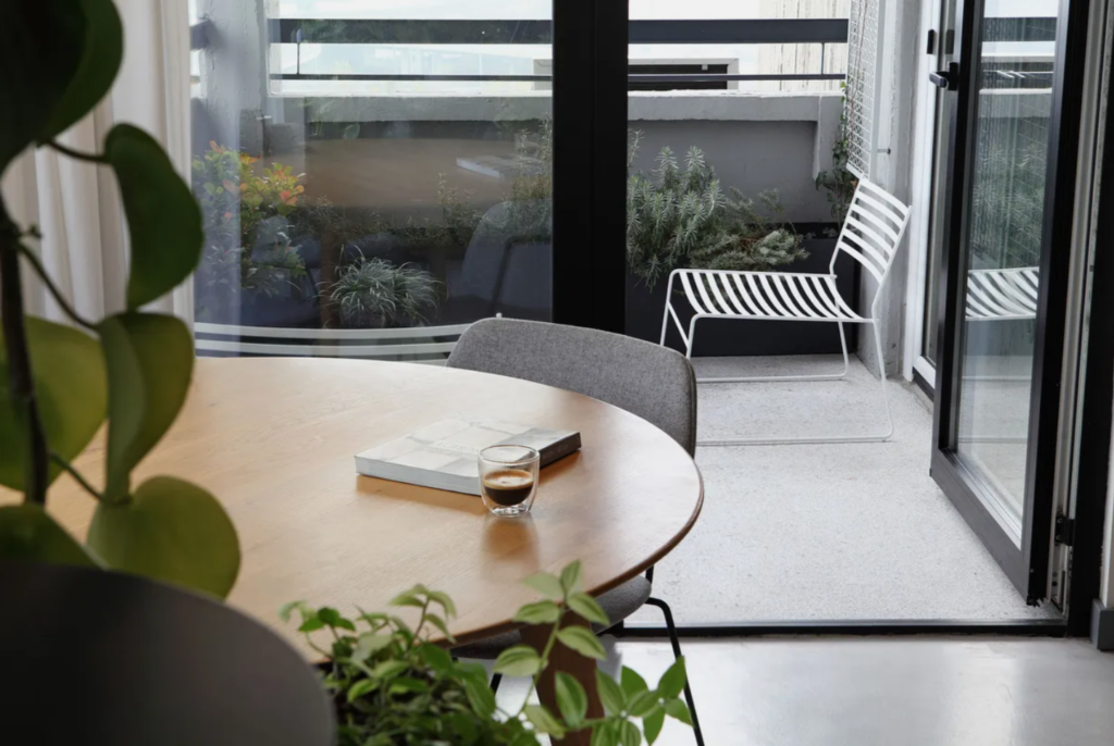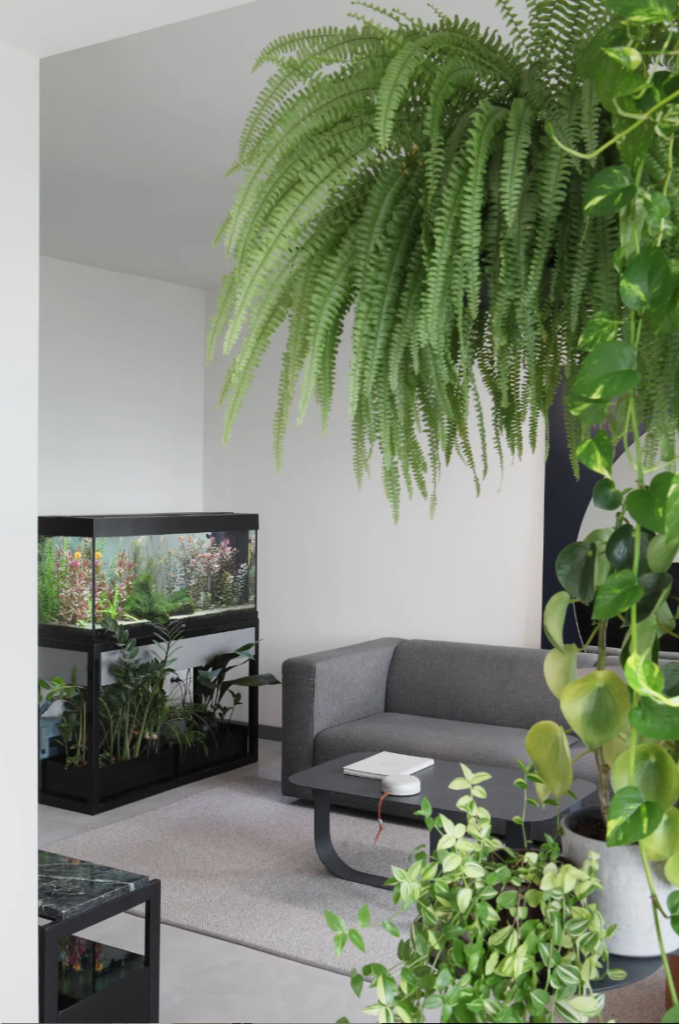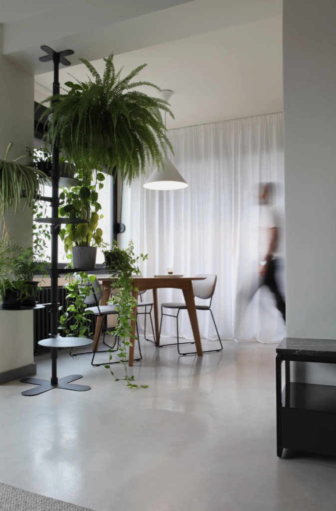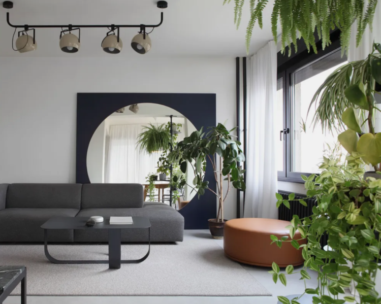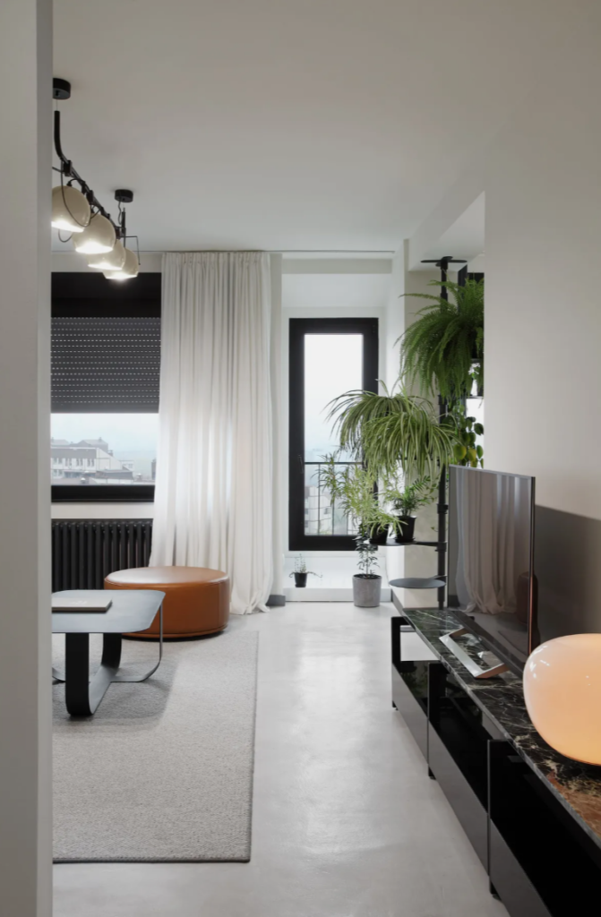 Jedan od ciljeva bio je postići rasterećenost i fluidnost ambijenta, pa je u tu svrhu korišćen nameštaj finih, tankih silueta i neutralnih boja. Komadi zemljanih tonova i bogato prirodno zelenilo unose puls i toplinu u prostor. Ogledalo u dnevnom boravku daje iluziju duplo većeg prostora.