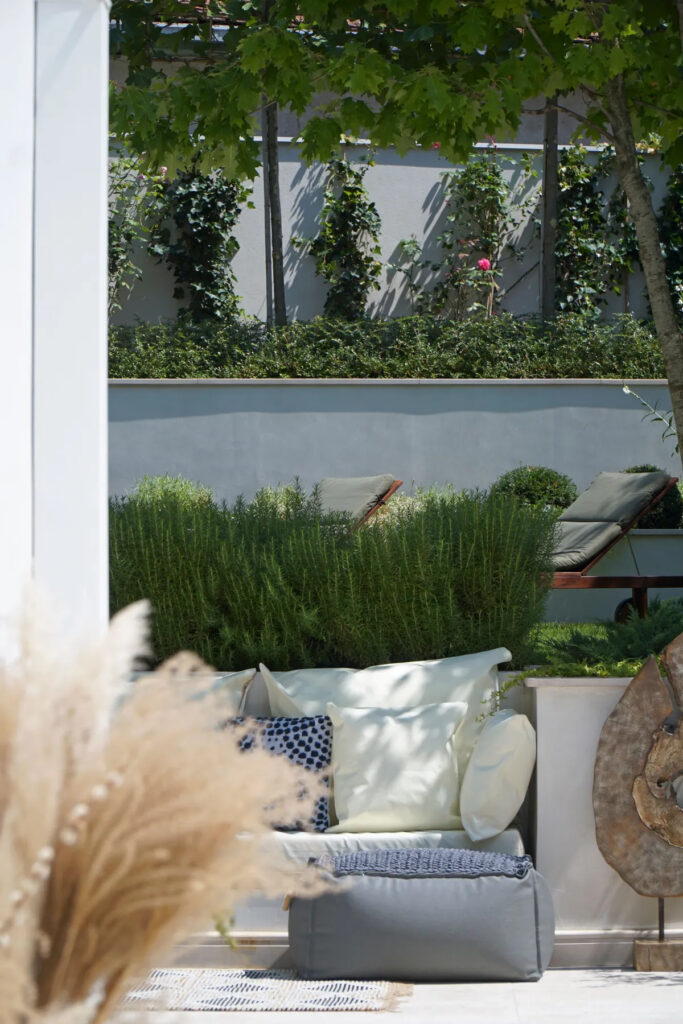 Odabirom materijala, korišćenjem antikviteta, vrsta biljaka i zadržavanjem starih elemenata, ovaj novonastali vrt izgleda kao da postoji već dugo, sa idejom da kroz vreme još više dobije na upečatljivosti i šarmu.