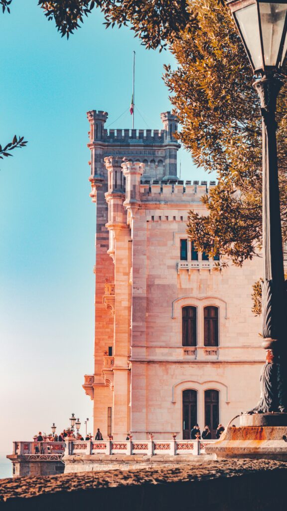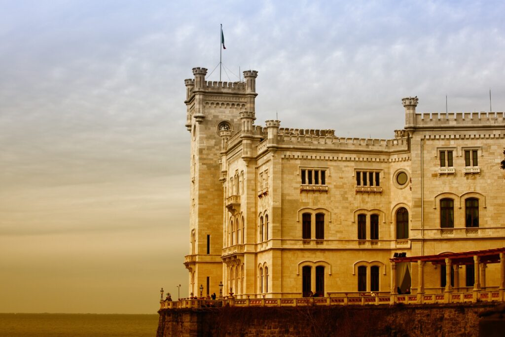Videćete ga kako stoji veličanstveno, okružen bujnim istorijskim parkom, na vrhu rta Grignano koji grli Tršćanski zaliv, otprilike šest kilometara od centra grada.