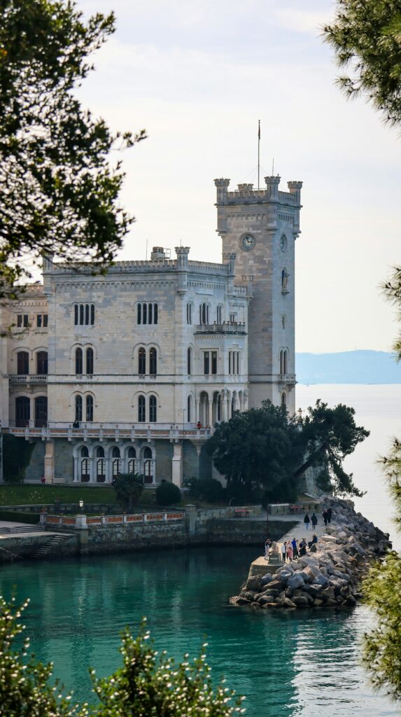 Uzdižući se iznad mora, dvorac Miramare je prvo blago koje ćete otkriti kada putujete slikovitim putem uz obalu ka Trstu.