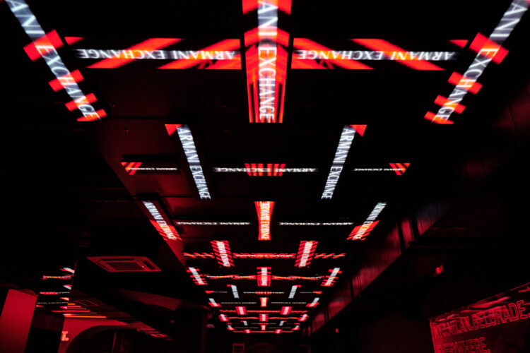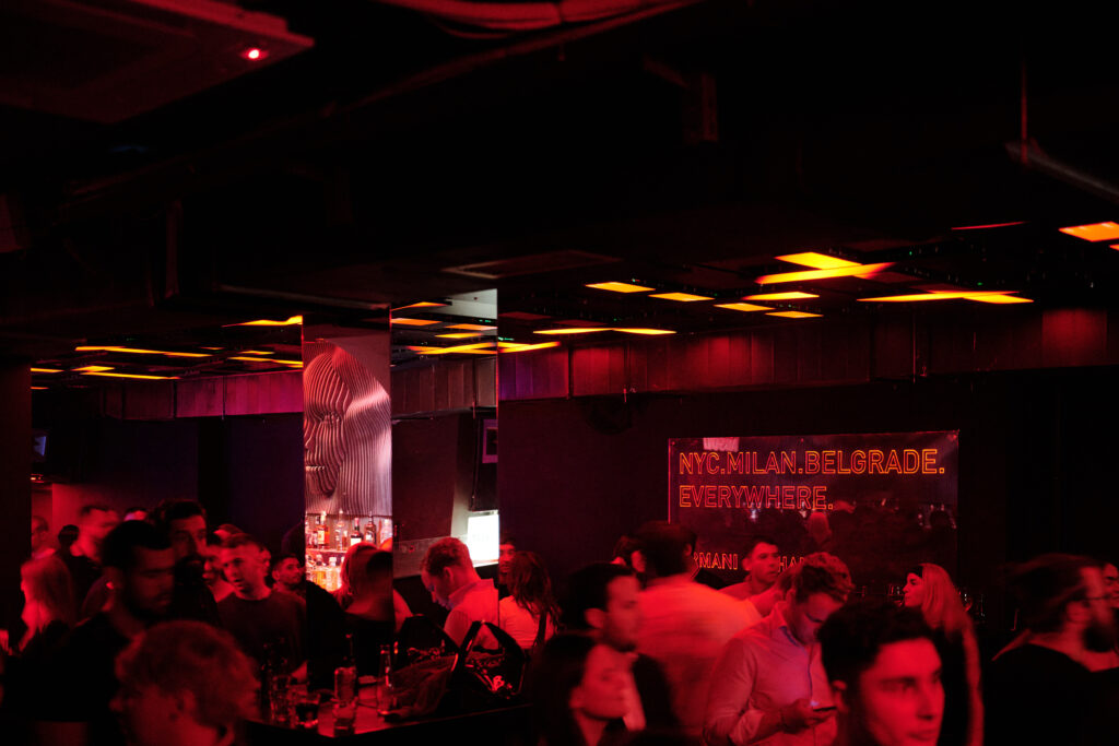 Ambijent kluba obogaćen je vizuelnim elementima karakterističnim za Armani Exchange – od 3D brendinga na baru i neonskog natpisa “NYC.MILAN.BELGRADE.EVERYWHERE” na danceflooru, do animacija na LED ekranima i lightboxa na DJ pultu. Pažljivo osmišljeni detalji, poput stikera na ogledalima, VIP narukvica i welcome pića sa brendiranim ledom, dodatno su istakli sinergiju urbanog stila i sofisticiranog klupskog iskustva.