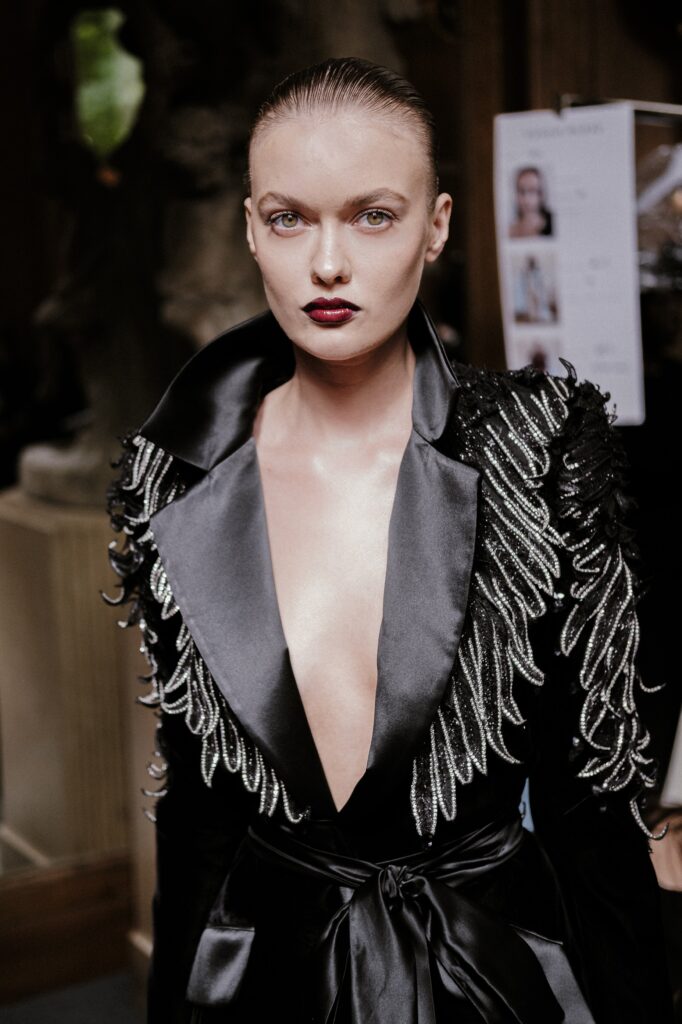 U editorijalima za Numéro i velikim kampanjama često je viđamo u kombinacijama koje spajaju femme-fatale senzualnost i strogu eleganciju – crno-crvene priče, precizni krojevi, providni slojevi, dugi kaputi i naglašena silueta.
