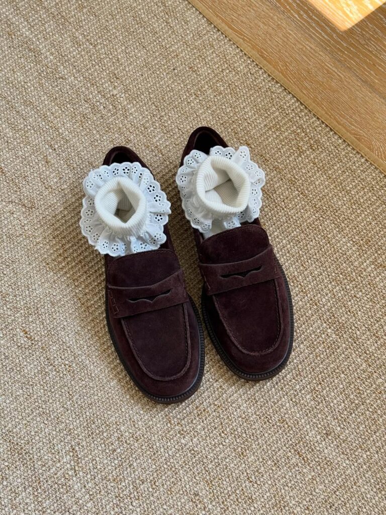 Iako trend nosi naziv „dedine“ cipele, ova sezona je sve samo ne staromodna u načinu stilizovanja. Jedan od najlakših načina da izgled deluje sveže jeste da se osloniš na moderni vajb viđen na pistama. Kod Miu Miu, braon mokasine su uparivane sa rebrastim ili debljim čarapama – kombinacija koja odmah deluje promišljeno uz plisiranu mini suknju ili ukrojenu midi suknju. Upečatljive čarape naglašavaju preppy look i dodaju lični pečat. Možeš da se ugledaš na Plazu – braon mokasine + hulahopke + suknja. Za klasičniji pristup, upari dedine cipele sa ravnim farmerkama i dodaj košulju ili oversize blejzer za uglađen, svakodnevni stajling.