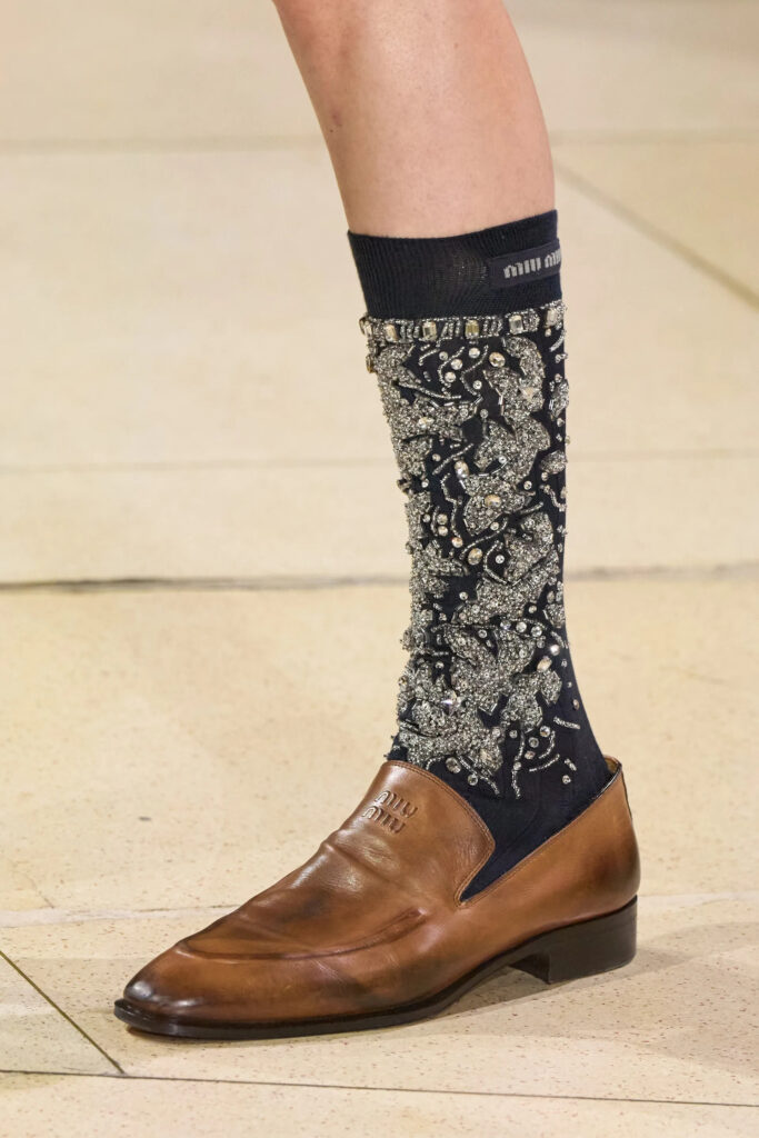 Mokasine, oksfordice i slične formalne, ali udobne cipele oduvek su bile bezvremenski osnov garderobe, ali braon varijante trenutno doživljavaju veliki trenutak nakon što su dominirale pistama za jesen 2025, uključujući The Row, Miu Miu i Pradu. Miu Miu je prikazao mekane braon kožne mokasine stilizovane uz rebraste čarape i suknje, dok je Loewe u prolećnoj kolekciji za 2026. ponudio verziju visokog sjaja sa metalnim detaljima, za malo uglađeniji pristup „grandpa-core“ cipeli.