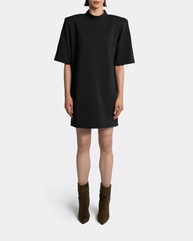Na talasu povratka mode osamdesetih, vraća se i mini-haljina sa podstavljenim ramenima, u jarkim bojama, obasjana lureksom i šljokicama. Struktuisana, upečatljiva linija, skulpturalna forma i sofisticirane, punije teksture stvaraju stil koji spaja smelu prošlost sa današnjim komforom, pretvarajući ovu haljinu u luksuzan i šik komad, savršen i za posebne prilike poput prazničnih i novogodišnjih proslava.