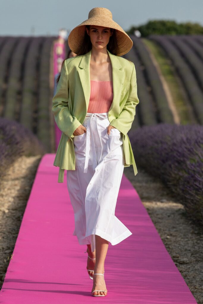 Manekeni su hodali po naizgled beskonačnom tepihu u fuksija roze nijansi, okruženi redovima ljubičaste lavande, nijanse koja je postala sinonim za ovaj brend. Kombinujući upadljive, jarke boje, prigušene neutralne tonove, pejzažne printove i cvetne akvarele, ova revija i kolekcija ostavile su utisak koji oduzima dah i učvrstile Jacquemusa u modnoj, društvenoj i pop-kulturi.