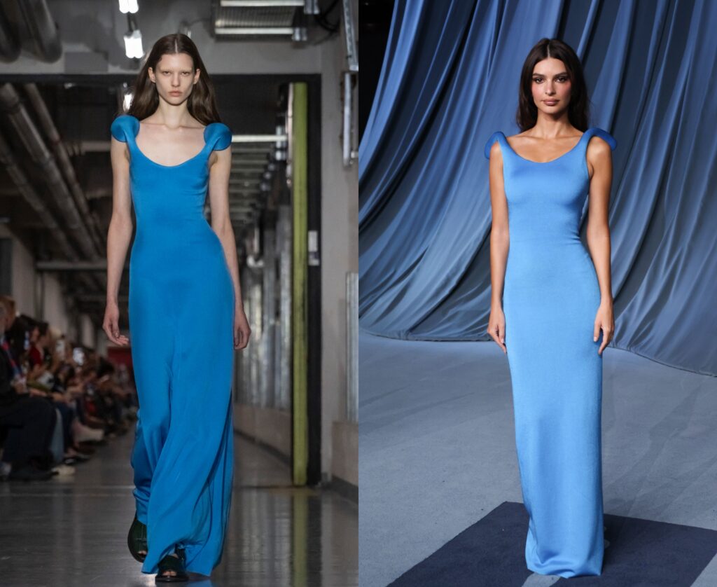 Emily Ratajkowski nosila je jedan od svedenijih modela iz debitantske kolekcije Durana Lantinka za Jean Paul Gaultier, dok su Elle Fanning i stilistkinja Samantha McMillen izabrale roze majicu i crvenu suknju sa perjem – direktno sa piste Balenciage.