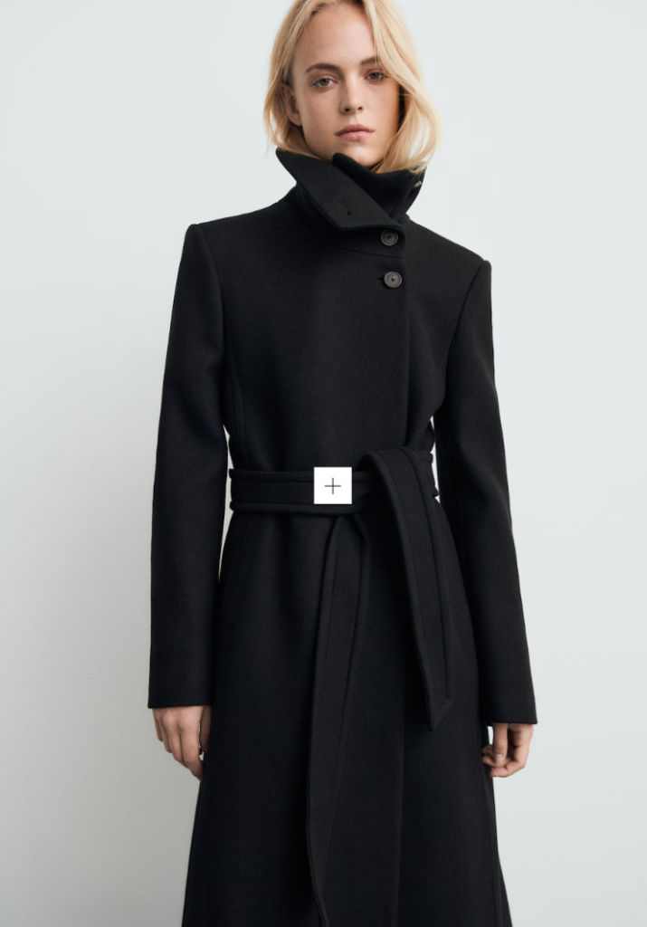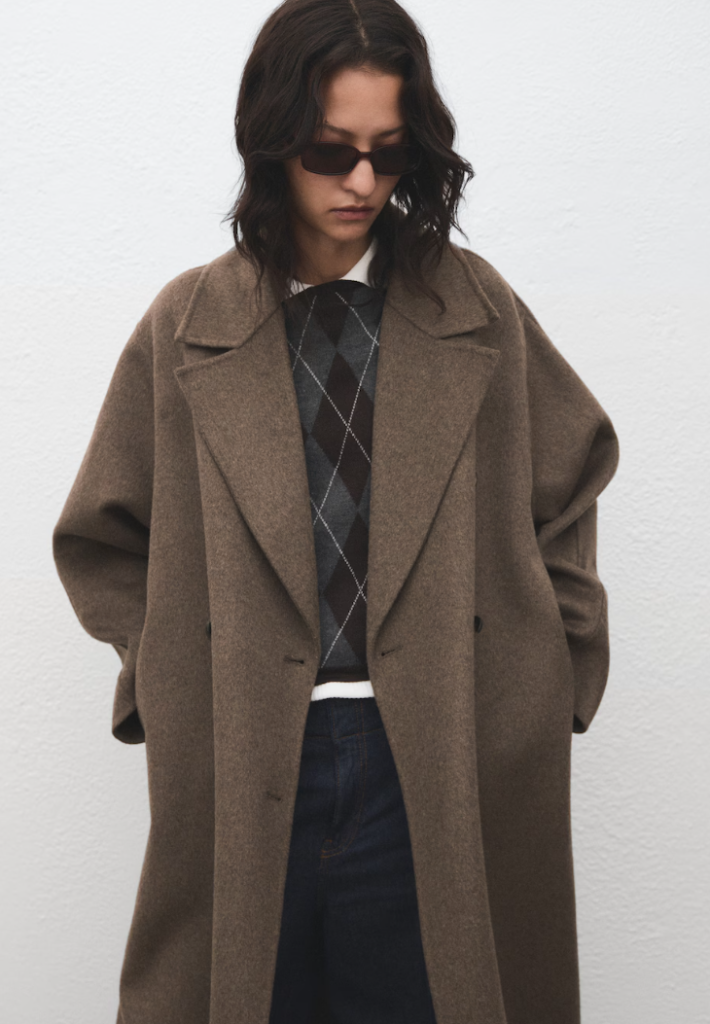 Za sezonu jesen/zima 2025–2026, Mango donosi kapute od čiste vune u tonovima devine, sive i crne – onaj tip klasičnog kroja koji se ne menja godinama.