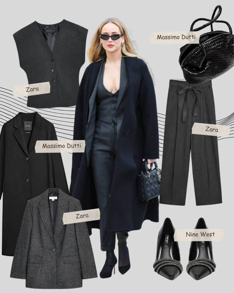 Prsluk u kombinaciji sa odgovarajućim pantalonama i blejzerom, štiklama i crnim naočarima za sunce daje neverovatno kul vajb. Upari crne hulahopke sa štiklama za šik, zimski prikladan izgled. Ova kombinacija funkcioniše i za kancelariju (u zavisnosti od dekoltea) i za piće posle posla.
