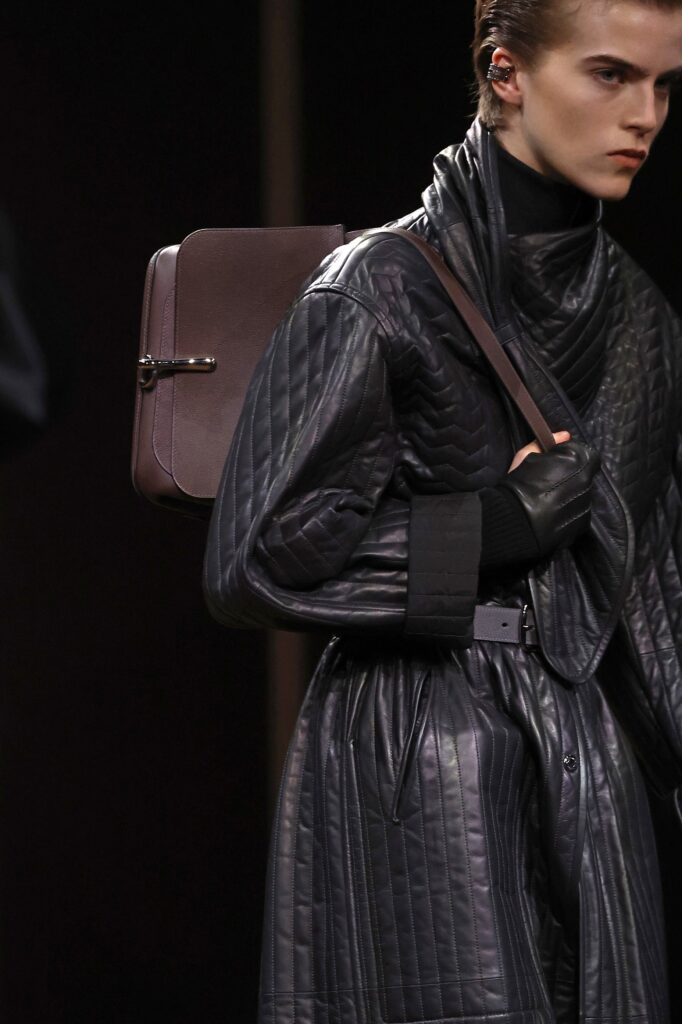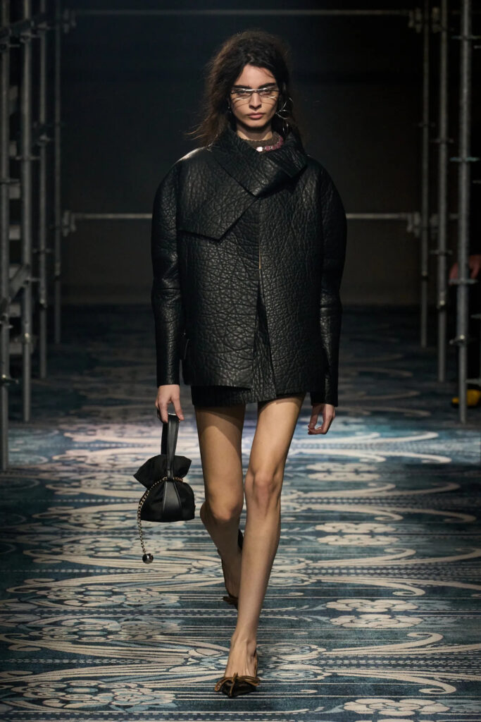 Sezonu ranije, Prada je igrala na total look sa usklađenim kompletom od reljefne kože – umesto duplog teksasa, vreme je za duplu kožu, piše francuski Vogue.