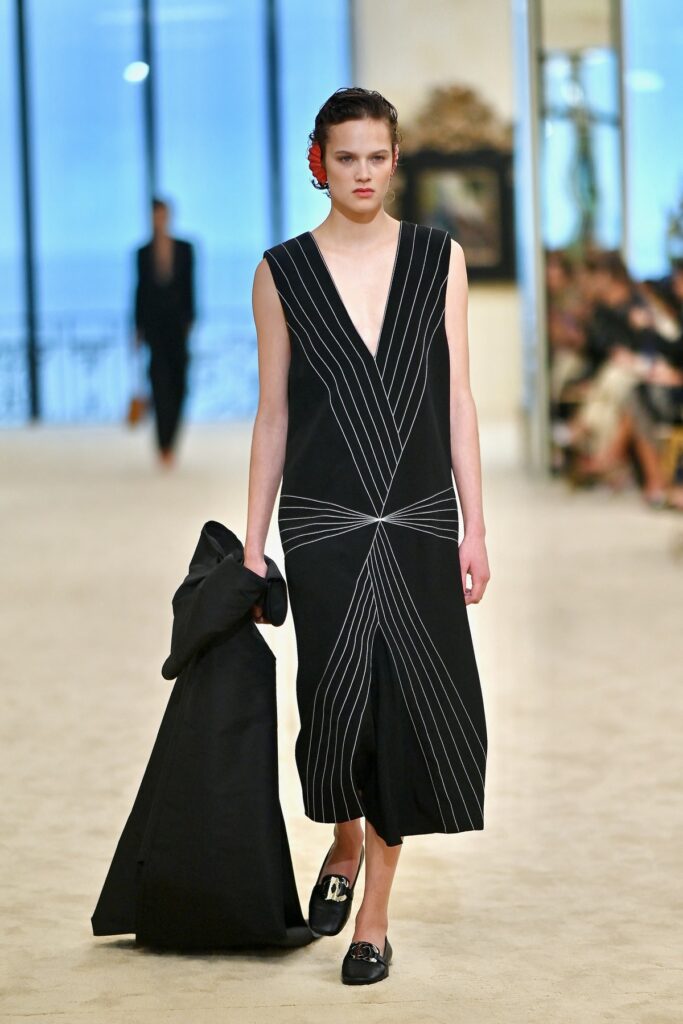 Na pisti se ta ideja najpre videla kroz jednostavnu crnu haljinu srednje dužine – verovatno najpoznatiju Chanel siluetu.