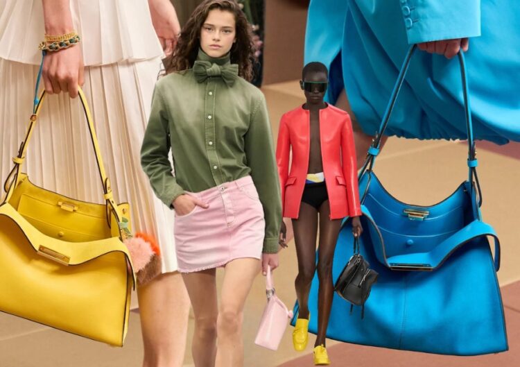 Na Chanel pisti, Mathieu Blazy je predstavio otvorene, prošivene torbe s preklopom, dok je Jonathan Anderson, debitant u ženskoj liniji Diora, prikazao torbe ukrašene mašnama, koje su visile pod uglom na jednom kaišu. Fendi je ponudio Peekaboo torbe sa jednim kaišem, sa stranama rašivenim tako da otkrivaju šljokičastu unutrašnjost. Na Loewe reviji, novi kreativni direktori Jack McCollough i Lazaro Hernandez pokazali su prvi pogled na novu eru brenda poznatog po „it“ torbama- kožne Amazona 180 torbe s jednim kaišem, koje su manekenke nosile nehajno, u poluotvorenim šakama, s rajsferšlusom namerno otkopčanim i nagnute pod uglom od 45 stepeni udesno.
