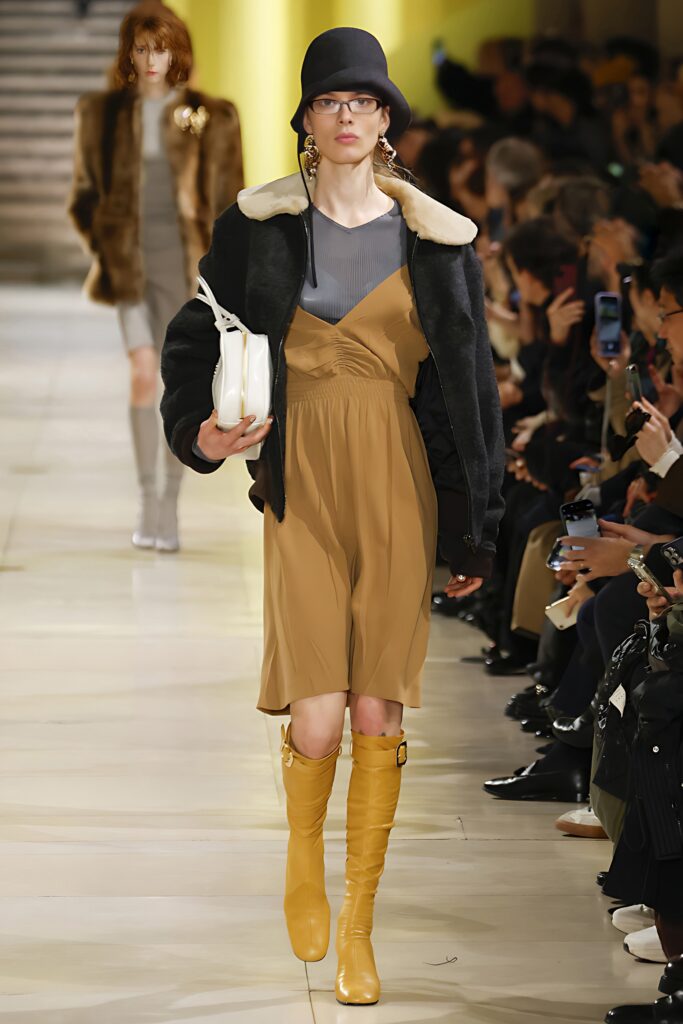 Iako deluje suprotno trendu „slouchy“ čizama, Miuccia Prada je u Miu Miu kolekciji za jesen–zimu 2025 predstavila model koji spaja oba stila. Među komadima inspirisanim vintidž estetikom, izdvojile su se čizme do kolena koje se stegnu oko lista kaišem, dok meka napa koža obavija nogu u nežnim naborima. U klasičnim nijansama poput crne i braon, ove čizme će sigurno dominirati street styleom već od kraja septembra.