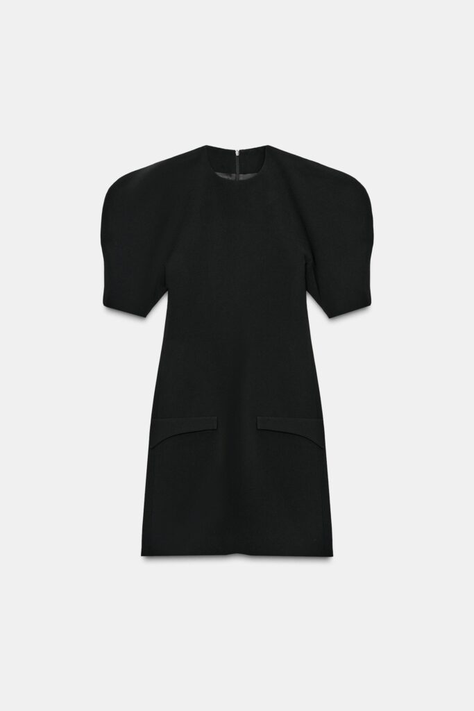 Krojem je dovoljno jednostavna da ne deluje napadno, a opet dovoljno efektna da odmah privuče pažnju. Ova mini haljina je kratka, sa okruglim izrezom, kratkim voluminoznim, puf rukavima, ravnim porubom i skrivenim rajsferšlusom na leđima.