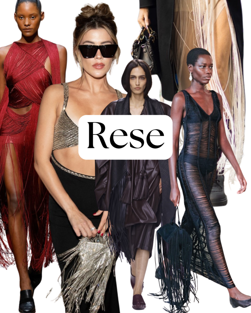 Tekstura i volumen su ideje koje se stalno ponavljaju, a jedan od načina na koji se prva od njih prikazuje jeste kroz dugačke viseće rese. Često svilenkaste i luksuznog izgleda ili metalik i odvažne, rese se koriste na rukavima, porubima, aksesoarima, pa čak i na haljinama napravljenim od njih. Čak i kožne jakne i pletenina dobijaju blago vestern prizvuk zahvaljujući ovom detalju koji je trenutno u trendu.