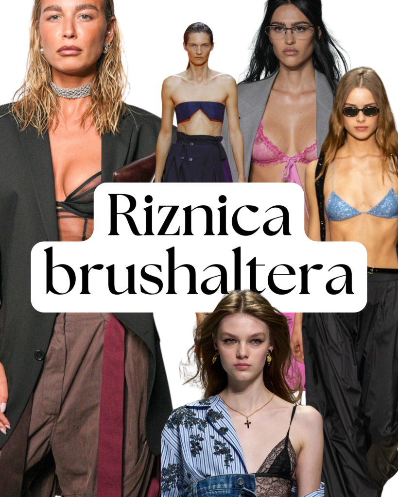 Brushalteri koji ove sezone preuzimaju ulogu topova zaista su revolucionarni. Kod Prade, prepoznatljiv trougao dobio je zaigrano novo značenje kroz kaišaste brushaltere bez bretela s isečenim detaljima, dok je na pisti Dolce&Gabbane, u pidžama-stilu (koji je pratio mušku kolekciju predstavljenu ranije ovog leta), čipkasti i cvetni brushalter upotpunio razigrane setove.