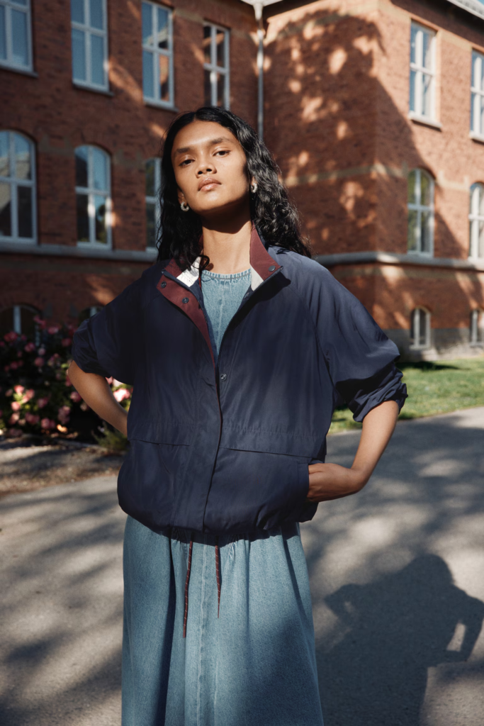 Dodatno je zanimljiva i visoka, čista kragna koja savršeno zamenjuje šal u hladnim danima. Ovaj detalj, preuzet iz sportskog sveta, unosi sofisticiran i praktičan ton. I materijal ide u istom pravcu – tehnička tkanina (idealna i za šuškavce), često u keperu ili gabardinu od vodootpornog pamuka (tipičnog za trenč), čini „ugly“ jaknu otpornom na kišu, udobnom i iznenađujuće elegantnom.